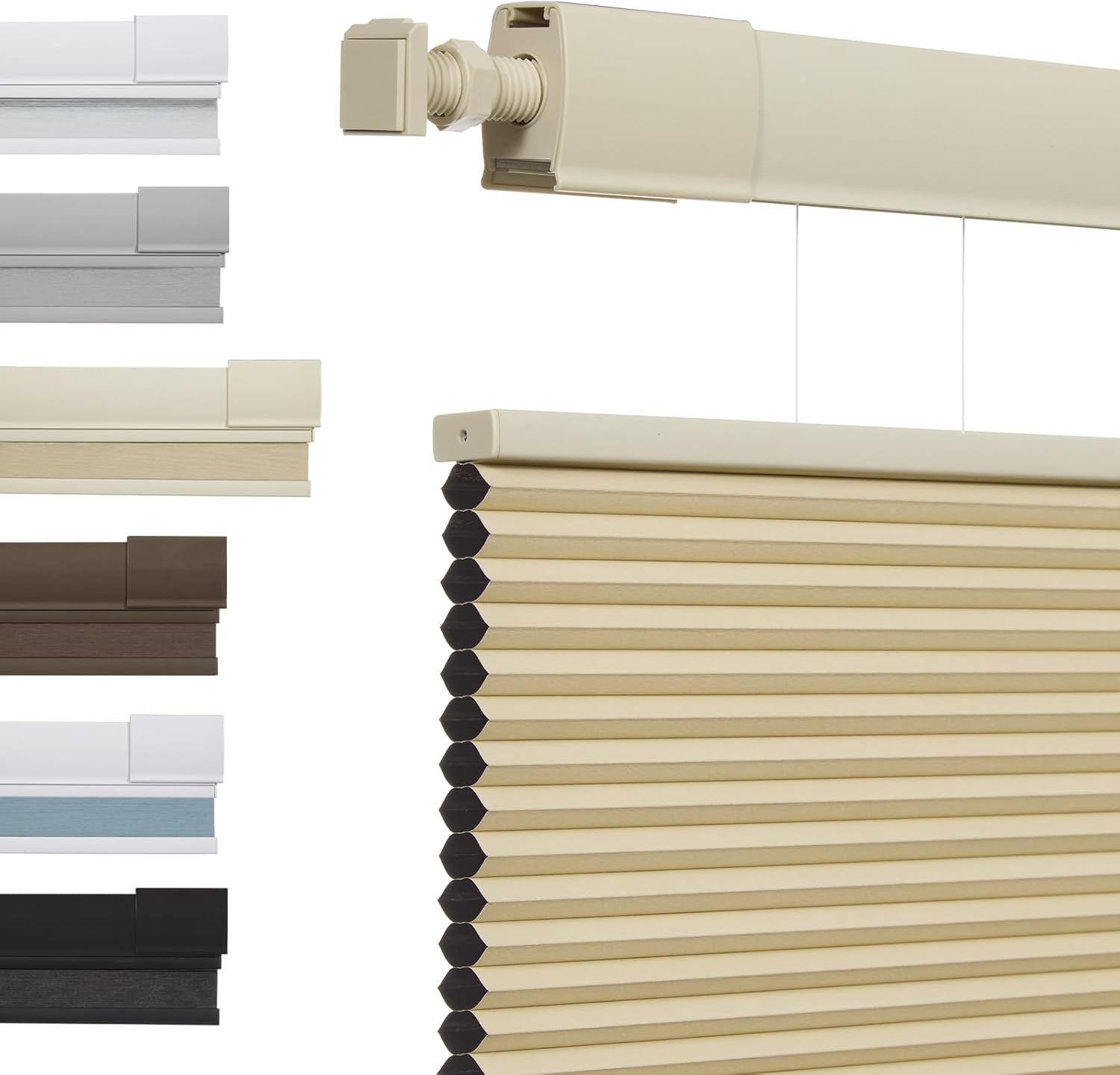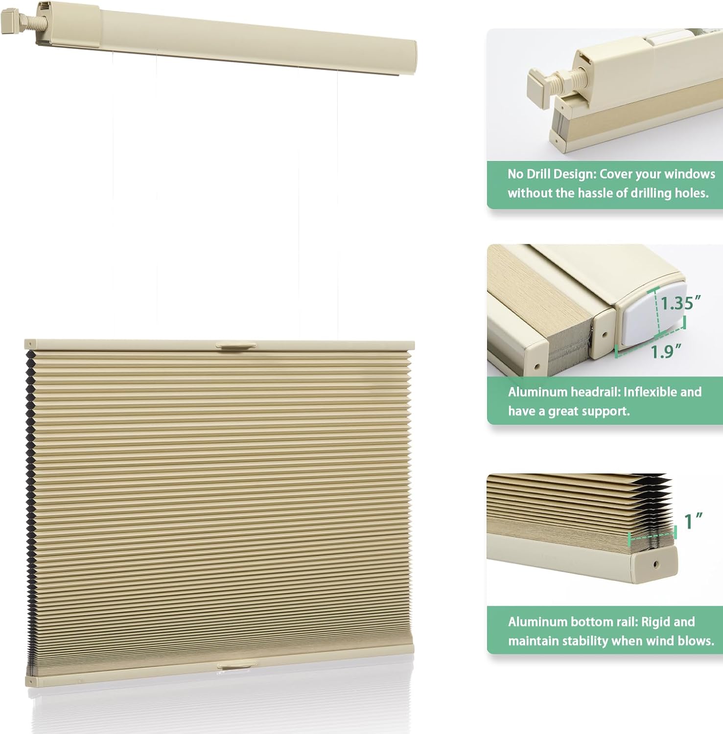 Cellular Shades for Windows, No Tools No Drill Top Down Bottom Up, 1" Blackout Fabric, Cordless Honeycomb Blinds for Indoor Window, Thermal Insulated Noise Reduction, Custom Size, Beige